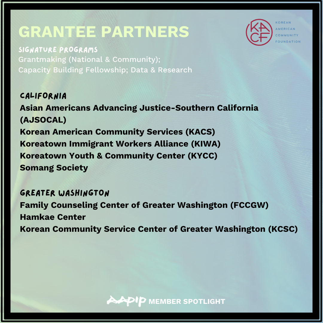 KACF’s mission is to build more equitable and thriving communities by fostering a culture of giving that catalyzes the collective generosity of Korean Americans.
