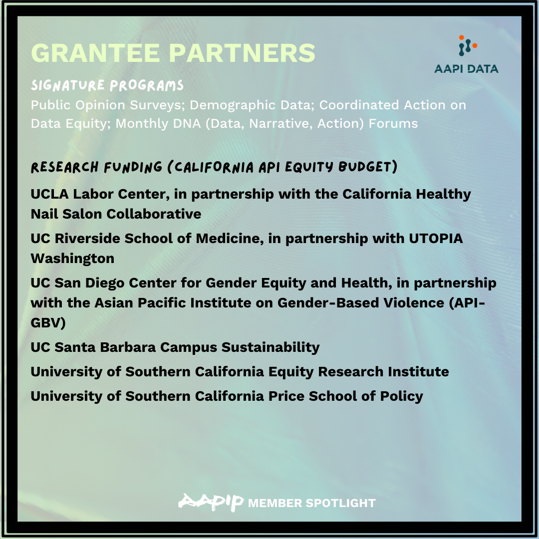 AAPI Data is a leading research and policy organization committed to producing accurate data that supports community narratives and drives action toward enduring solutions for Asian Americans, Native Hawaiians, and Pacific Islanders (AANHPIs). We aspire to transform public and private systems to ensure that all AANHPI communities are recognized, valued, and prioritized.